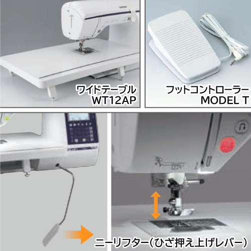 ニーリフターを使うと、ひざで押えの上げ下げができ、両手が使え便利です。